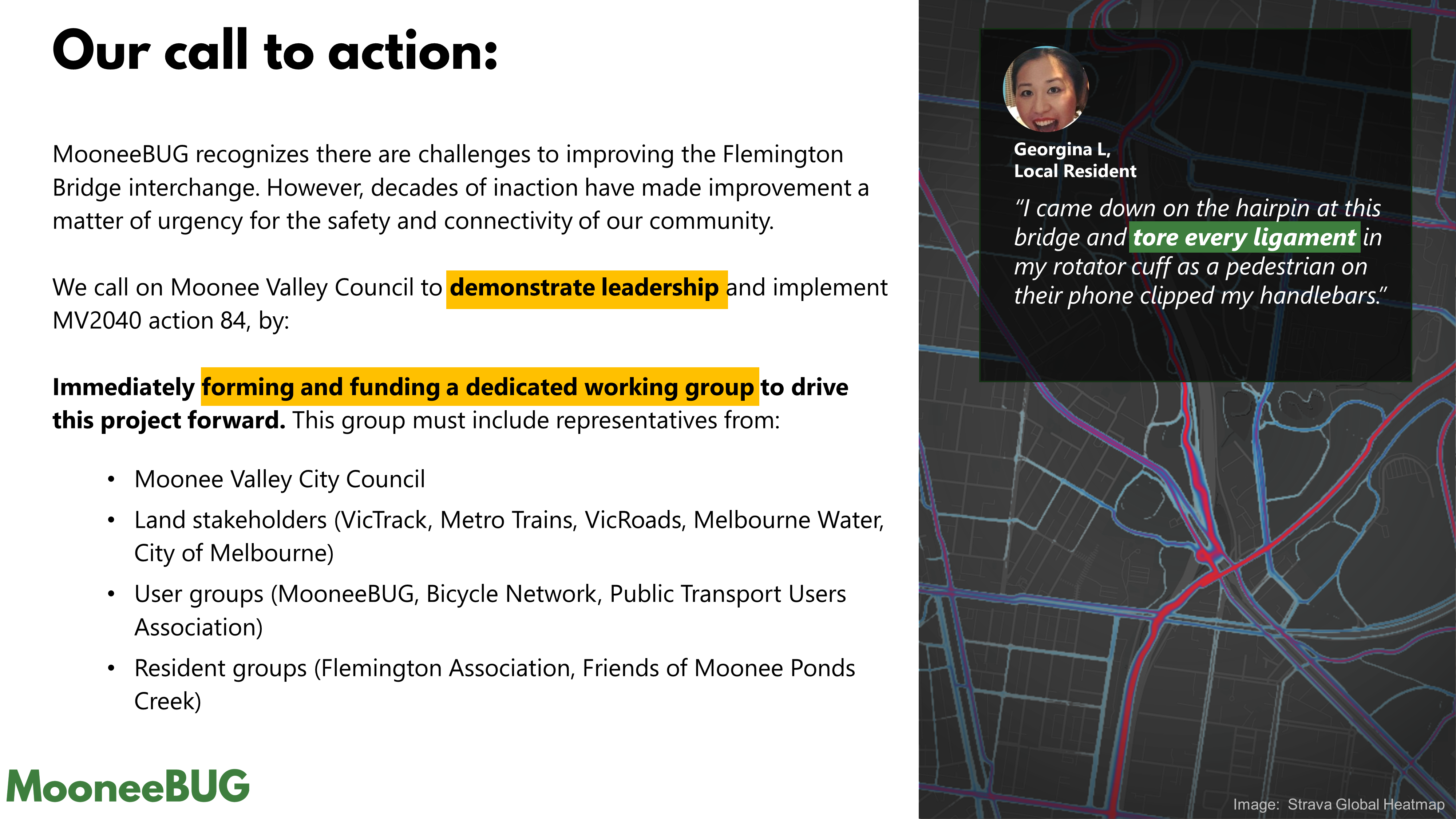 Flemington Bridge bike access: Great to see David Macauly raise this issue with the council. Listen to his question and the council’s response here.